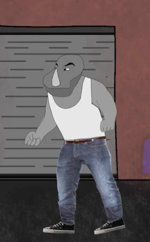 In the series, he wears a white sweater/jumper, black belt, blue jeans and black loafers. After the first attack from Barkley, he is seen with his arm in a cast. After the second attack from Barkley, he is also seen with a broken leg cast and a crutch. After his third attack, he is seen with bandages covering his arm, leg, and the top of his head hiding his spinkes. In his last appearance, he was taking pictures of Barkley to post of what appears to be him venting on how he feels about the attacks, saying it probably wasn't Mylo and rather Barkley.